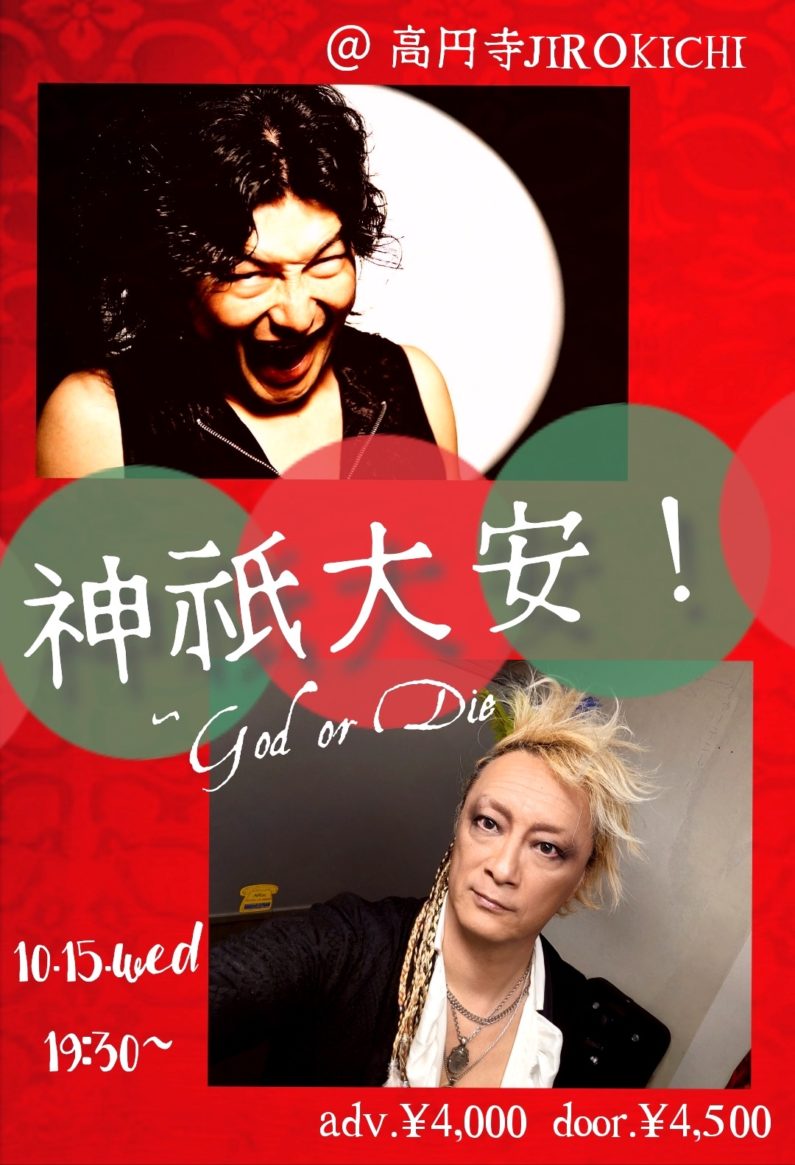 10月15日(水)神祇大安〜God or Die ピアノLive 予約(♪4000)当日(♪4500) 2025年10月15日 ホッピー神山pf,key DIE (野沢ダイジロウ)key Open 18:30 Start 19:30 Charge+1drink order ご予約受付⇒ die1964.com/ticket.html Tweet : 2025年10月