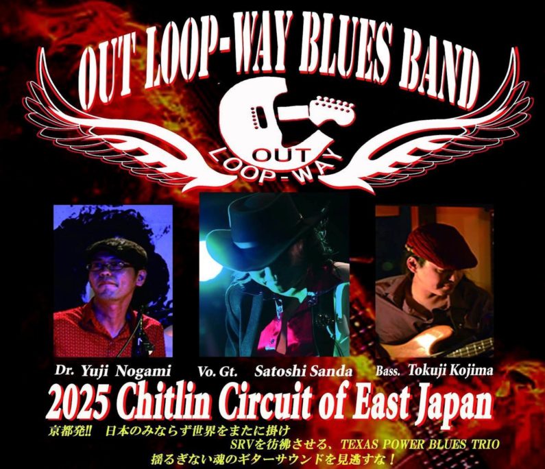 10月16日(木) 2025 Chitlin Circuit of East Japan -OUT LOOP-WAY BLUES BAND 予約(♪3000)当日(♪3500) 2025年10月16日 三田悟志g,vo 小島得児b 野上雄司dr Open 18:30 Start 19:30 Charge+1drink order ●9/18(木)19時よりSTAGLEEにて予約受付 ※整理番号発行/整理番号順の入場で自由席となります Tweet : 2025年10月