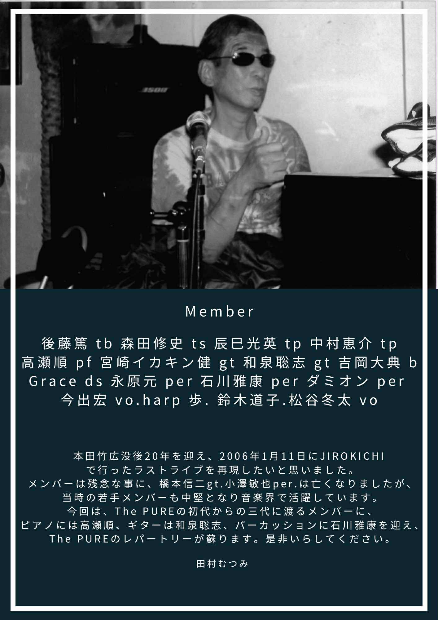 後藤篤tb 森田修史sax 辰巳光英tp 中村恵介tp 高瀬順pf 宮崎イカキン健g 吉岡大典b Grace(dr) 永原元perc 石川雅康perc ダミオンperc 今出宏vo,harp 歩vo 鈴木道子vo 松谷冬太vo