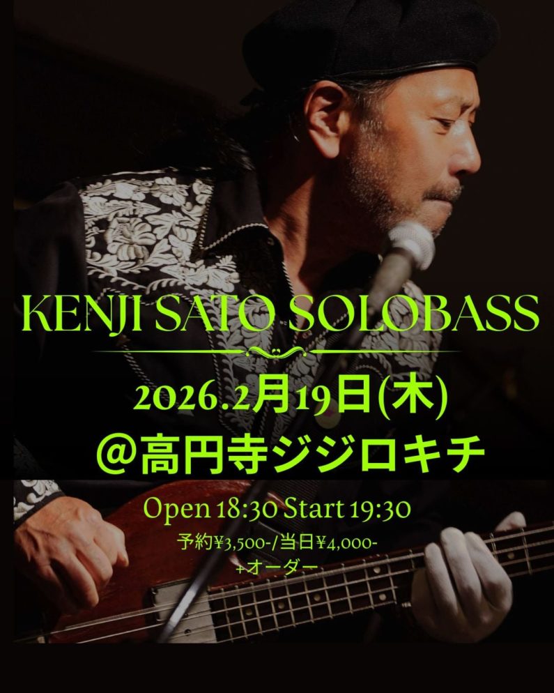 2月19日(木)佐藤研二Solo 予約(♪3500)当日(♪4000) 2026年2月19日 佐藤研二b Open 18:30 Start 19:30 Charge+1drink order ●1/22(木)19時よりSTAGLEEにて予約受付 ※整理番号発行/整理番号順の入場で自由席となります Tweet : 2026年2月