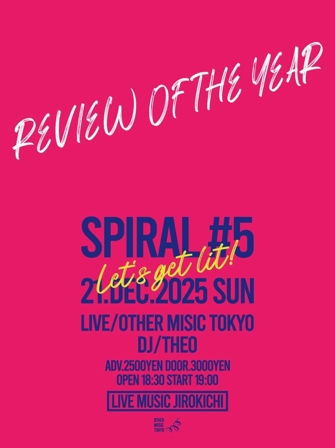 21 12月 2025 12月21日(日)other music tokyo Spiral vol.5 予約(♪2500)当日(♪3000) PRITS(b) HIBARI(g) AYUMI(samp,key) 高本信宏key,g 三浦貴広dr DJ:THEO Open 18:30 Start 19:30 Charge+1drink order …