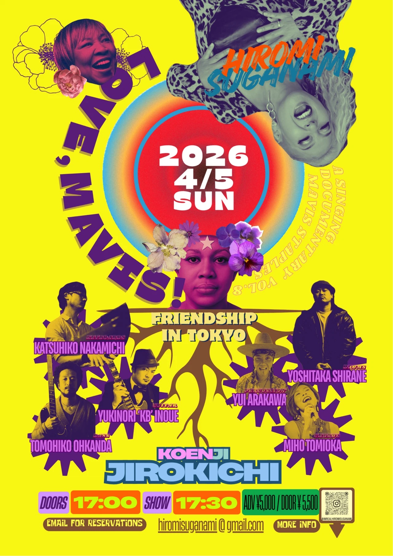 5 4月 2026 4月5日 (日)菅波ひろみ “Love, Mavis!”– Friendship In Tokyo 2026 予約(♪5000)当日(♪5500) 菅波ひろみvo 中道勝彦key 井上KB幸法g,cho 大神田智彦b 白根佳尚dr 荒川結perc 富岡美保cho “※Open 17:00 Start 17:30 Open 17:00 Start 17:3 …